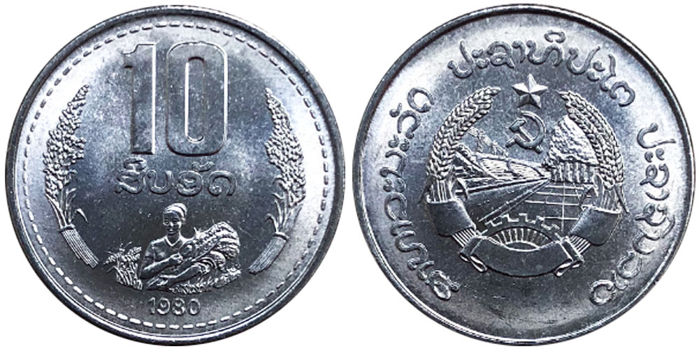 10 ат (атов) 1980 Лаос UNC