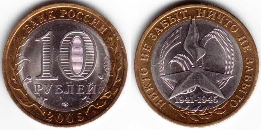 10 рублей 2005 Россия – 60 лет Победы – СПМД