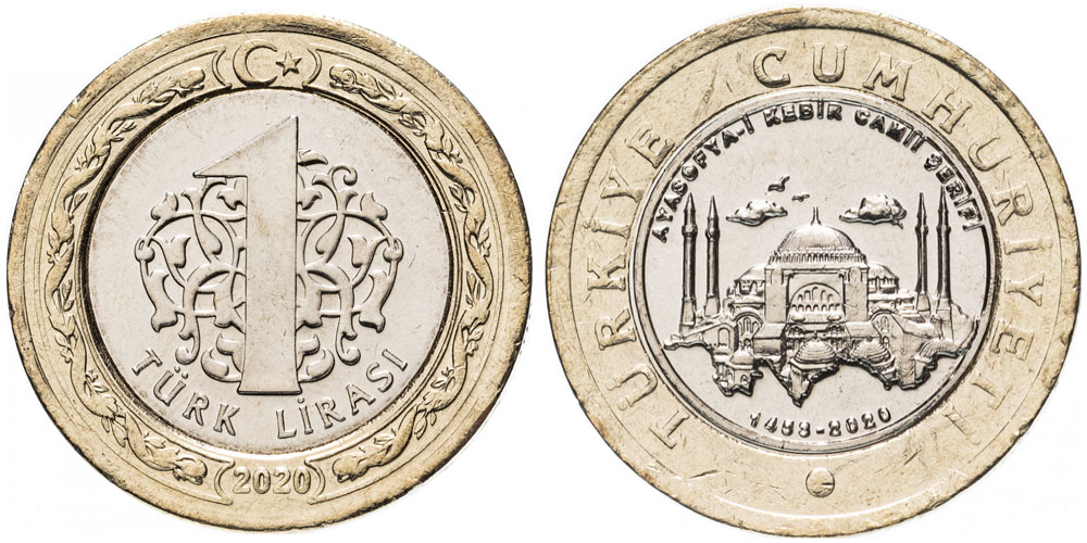 1 лира 2020 Турция – Большая мечеть Айя-София UNC