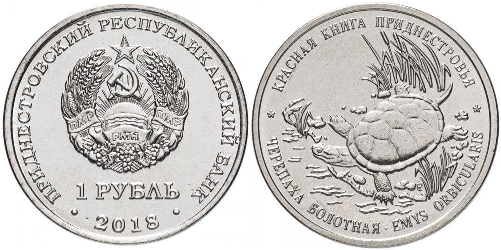 1 рубль 2018 ПМР – Красная книга Приднестровья – Черепаха болотная