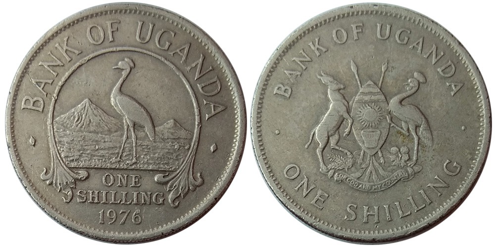 1 шиллинг 1976 Уганда – Восточный венценосный журавль уценка №1