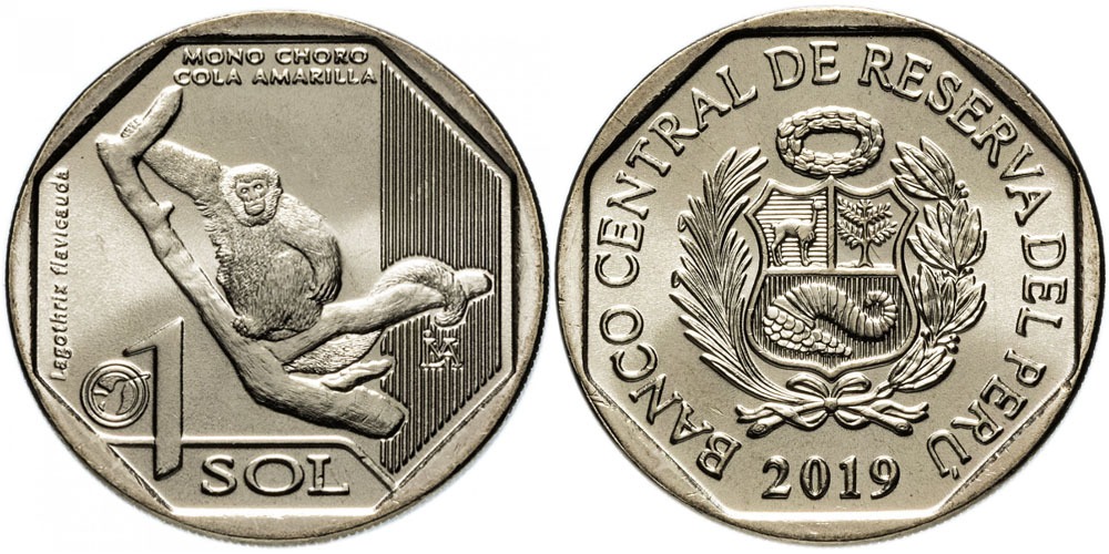 1 соль 2019 Перу – Фауна Перу – Желтохвостая обезьяна UNC