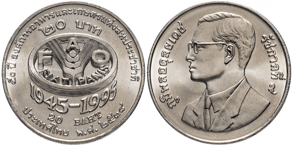 20 бат 1995 Таиланд – 50 лет продовольственной программе – ФАО
