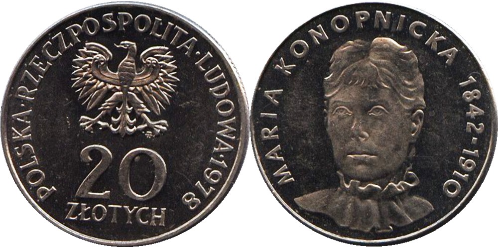 20 злотых 1978 Польша – Портрет Марии Конопницкой