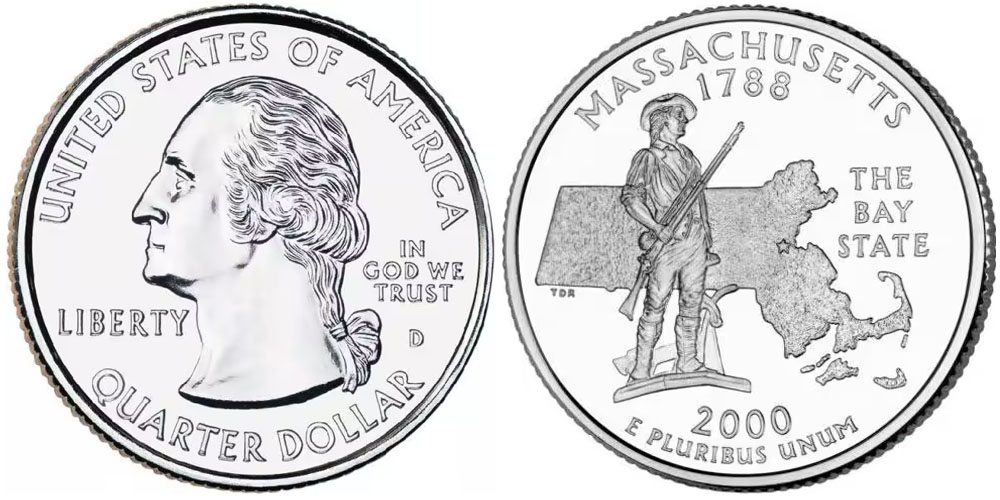 25 центов 2000 D США – Массачусетс – Massachusetts UNC
