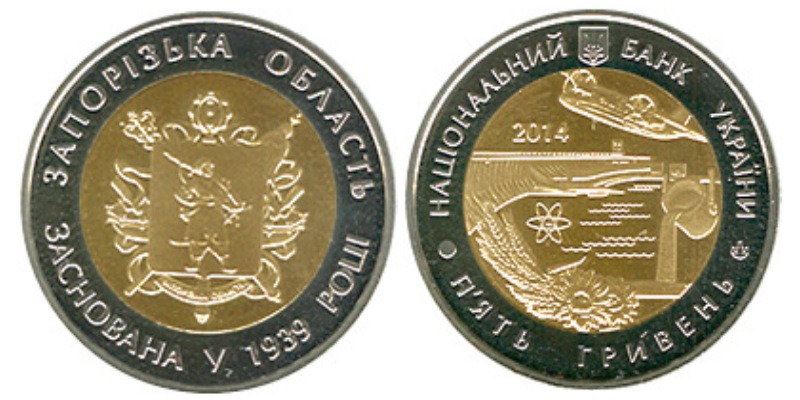 5 гривен 2014 Украина – 75 лет Запорожской области
