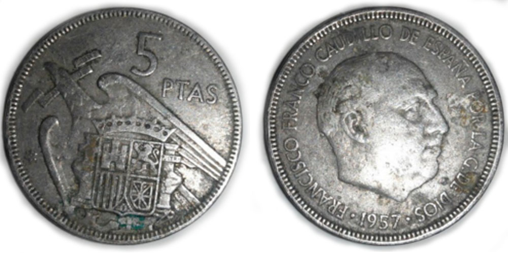 5 песет 1957 Испания – 65 внутри звезды
